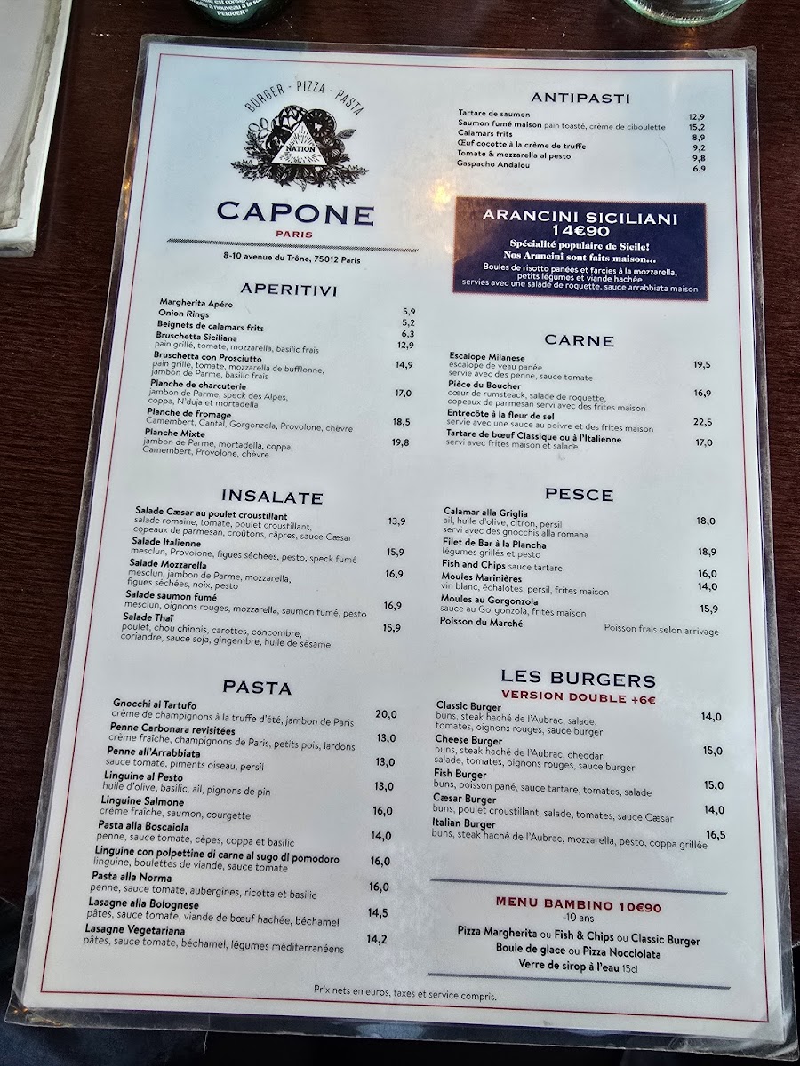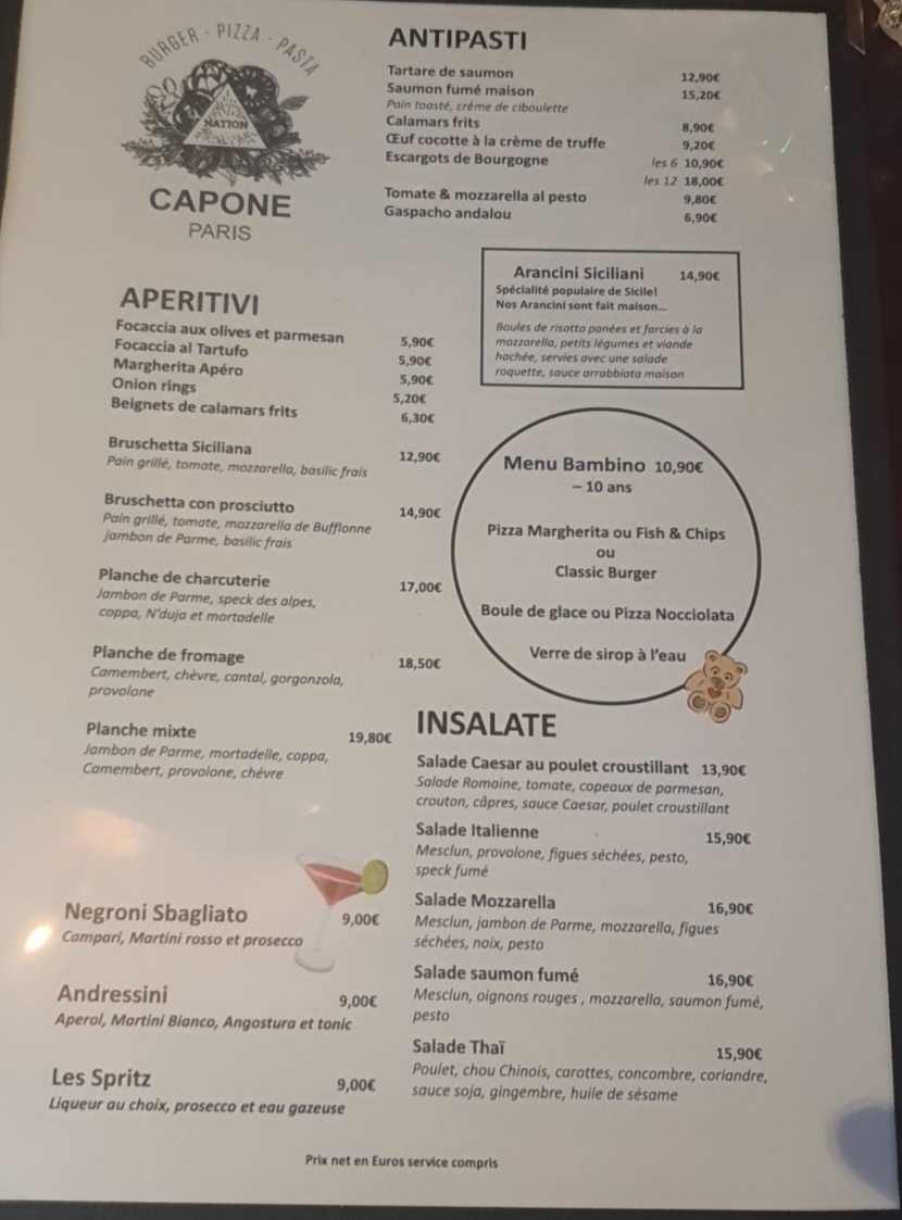 Café Capone in Paris is a vibrant blend of café, bar, and French-Italian brasserie that captivates with its unique steampunk décor and lush greenery. The menu is a rich tapestry of classic Italian and French dishes, featuring standout items like the fiery Penne all’Arrabbiata, expertly grilled calamari, and wood-fired pizzas praised for their authentic, delicious taste. Whether you’re craving hearty pasta or a perfectly crisp pizza, each dish reflects genuine culinary passion.